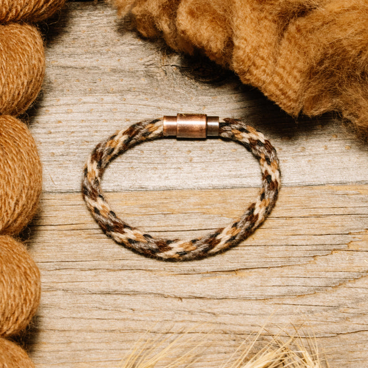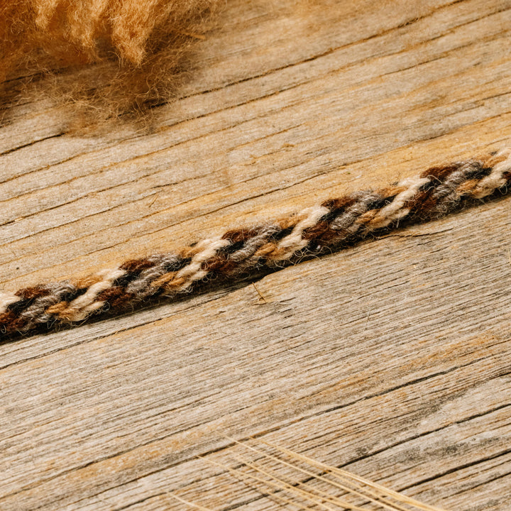 A warm, grounded blend of gray, black, brown, fawn, and beige—each shade the unaltered, natural color of the alpaca.