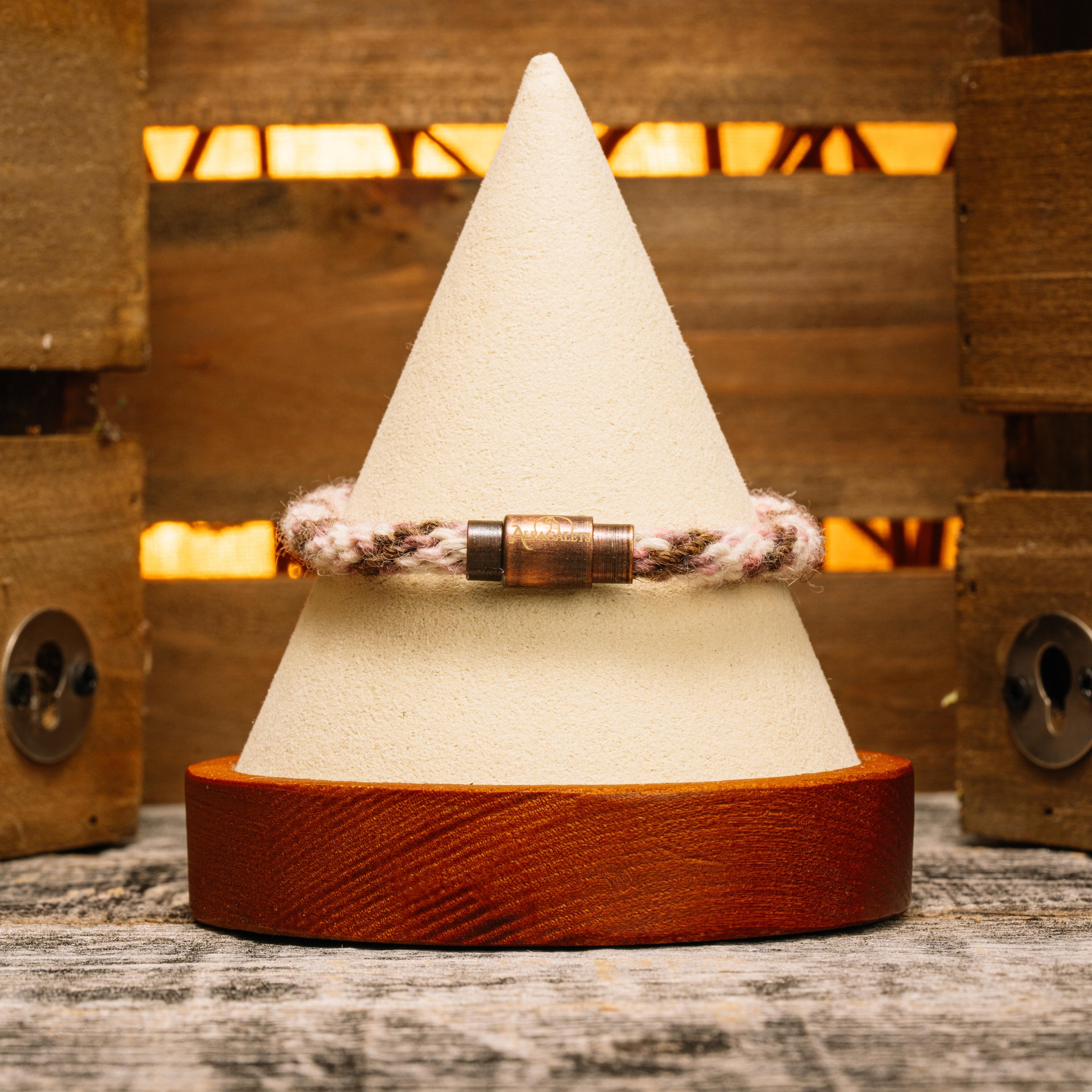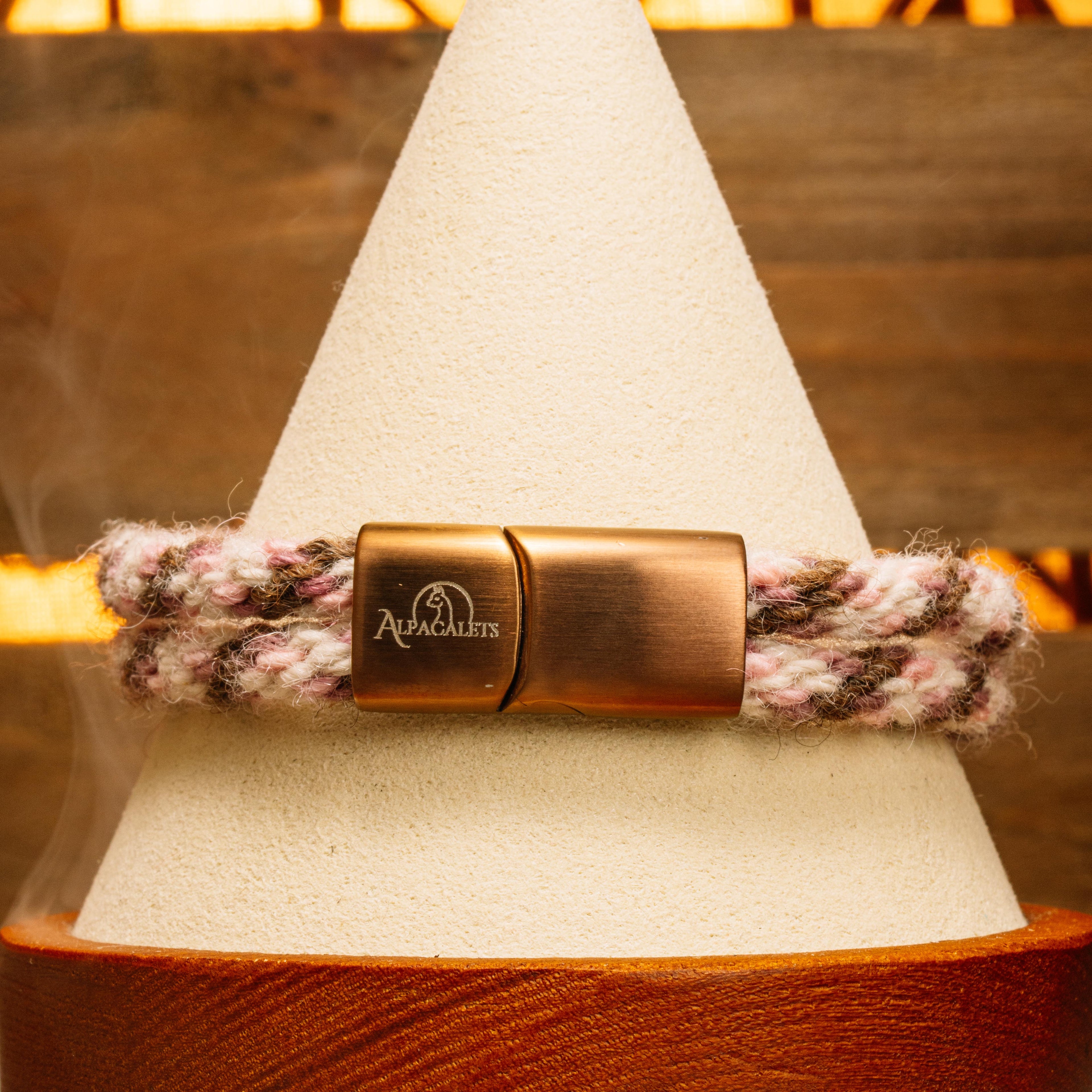Available as a single with a brass clasp and a double with a bronze stainless steel clasp and bronze nickel-free zinc alloy slides. Clasp on the double is a locking magnetic clasp.