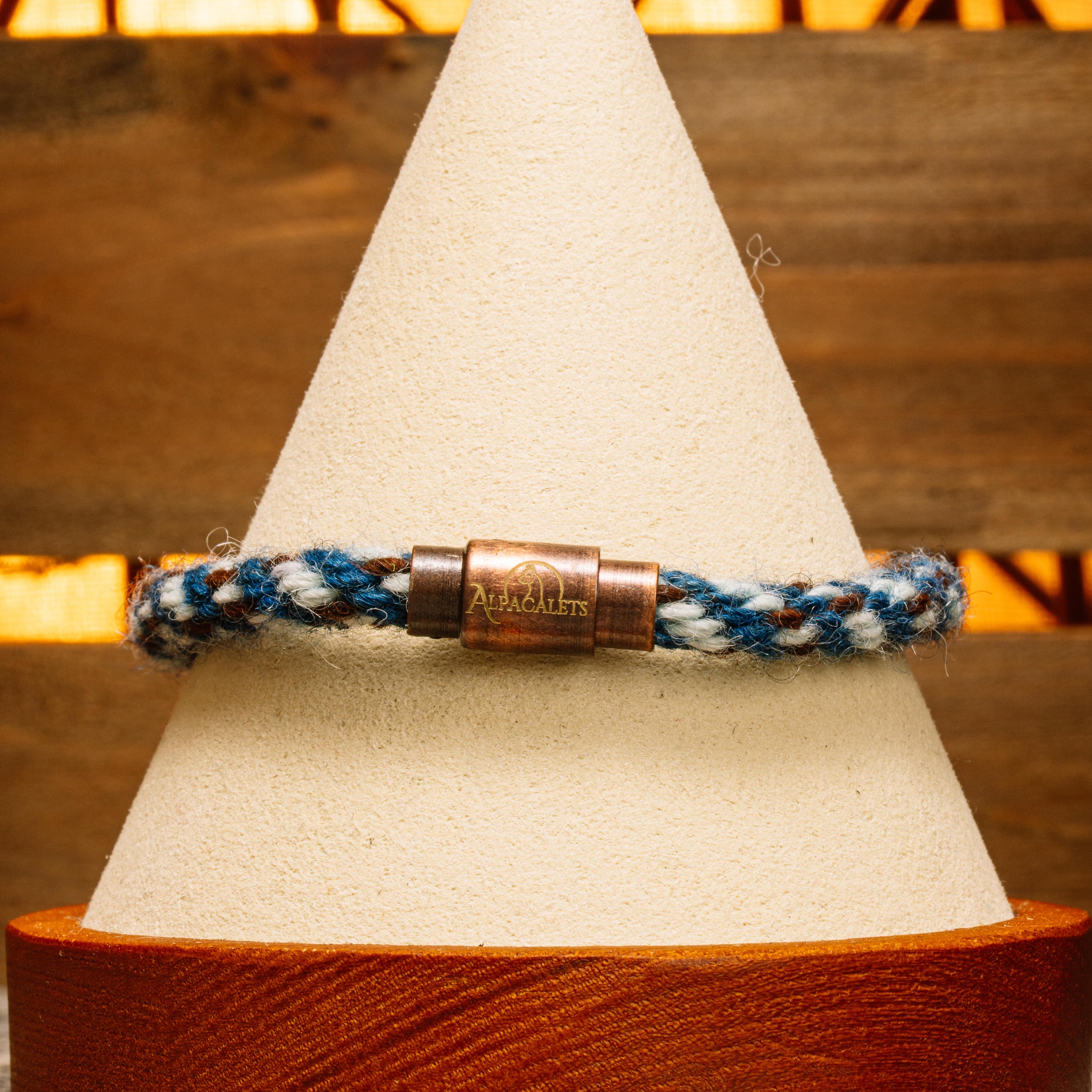 Available as a single with a brass clasp, and a double with a bronze stainless steel clasp and bronze nickel-free zinc alloy slides.