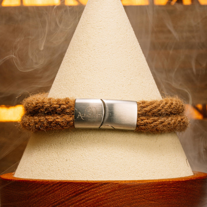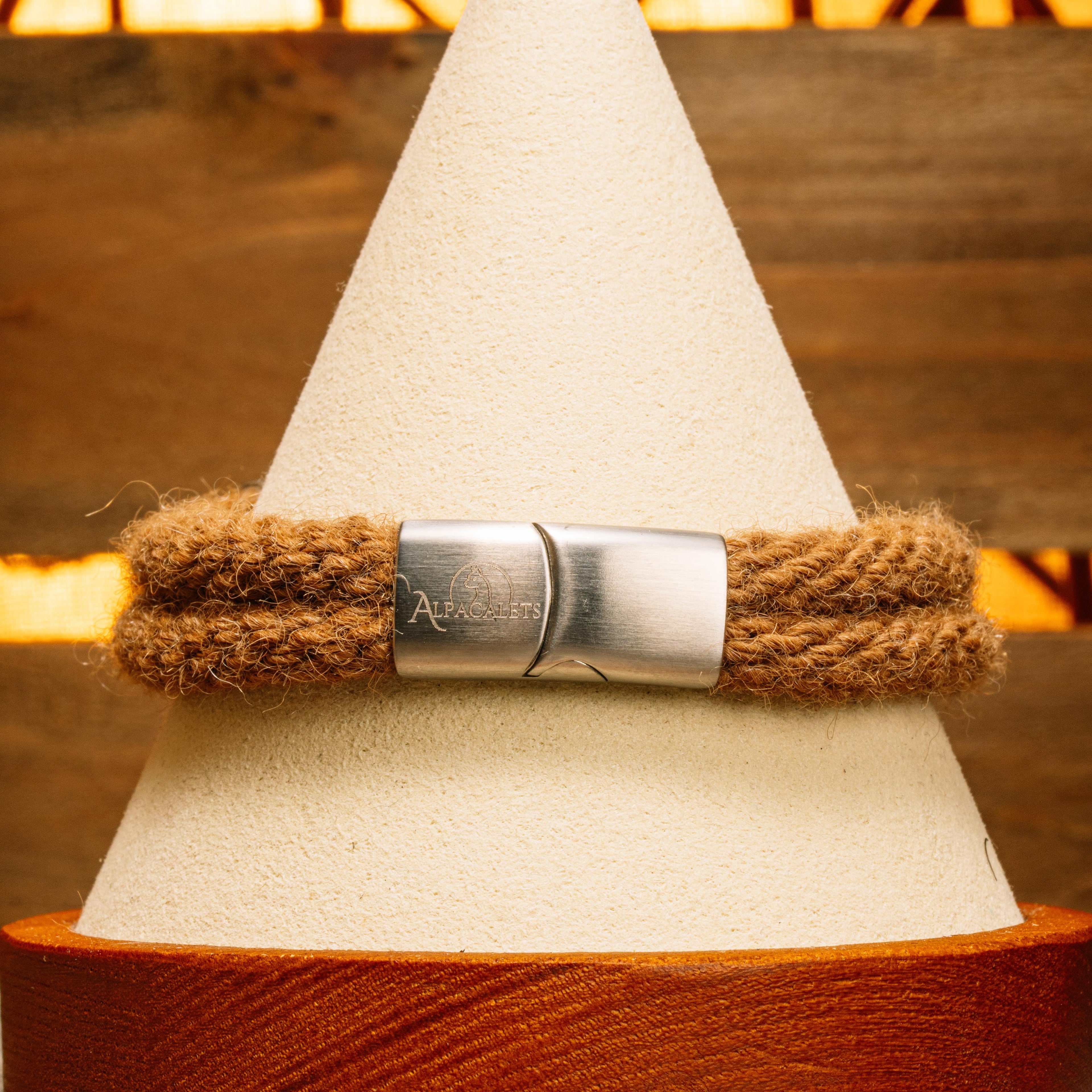 Warm and earthy, this solid braid is made from undyed alpaca fiber in its natural medium fawn tone. Simple, classic, and rooted in the rhythms of the ranch.